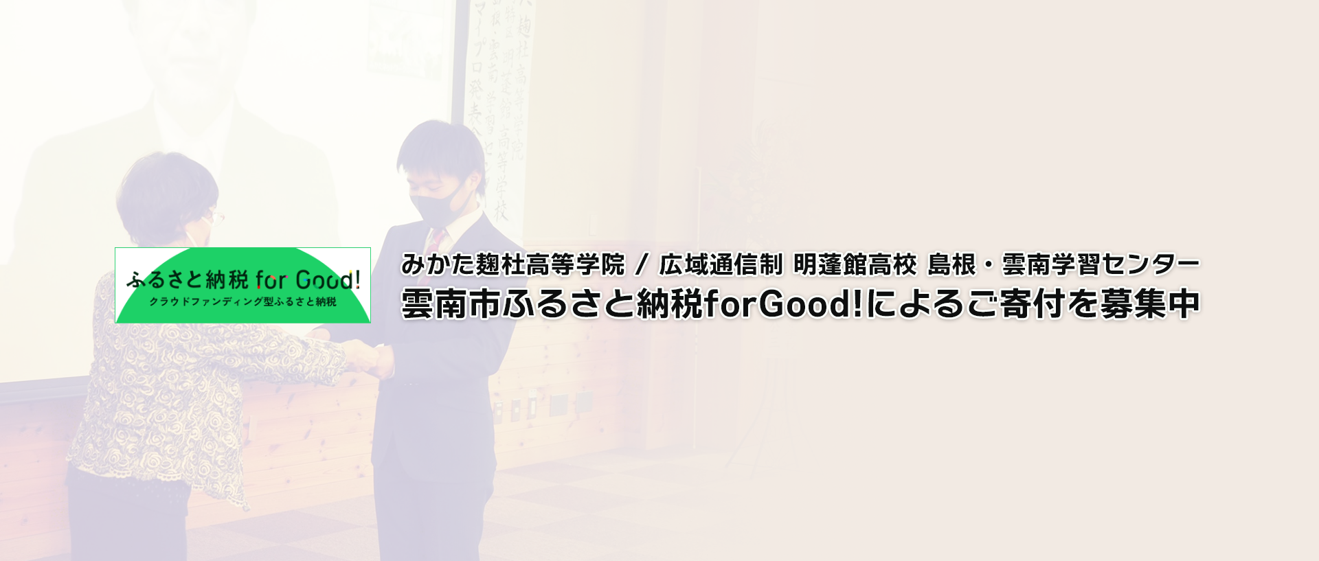 みかた麹杜高等学院 / 広域通信制 明蓬館高校 島根・雲南学習センターの取り組みの様子 明蓬館高等学校 みかた麹杜高等学院/島根・雲南学習センター みかた麹杜高等学院 / 広域通信制 明蓬館高校 島根・雲南学習センターの取り組みの様子を在籍生徒の投稿や第1期生の学びの様子で紹介しています。 また、明蓬館高校のサイトでのみかた麹杜高等学院の紹介はこちらから 明蓬館高等学校